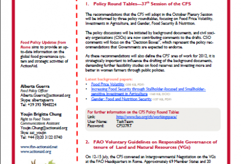 Food Policy Updates from Rome aims to provide an up-to-date information on the global food governance system and strategic activities of ActionAid.